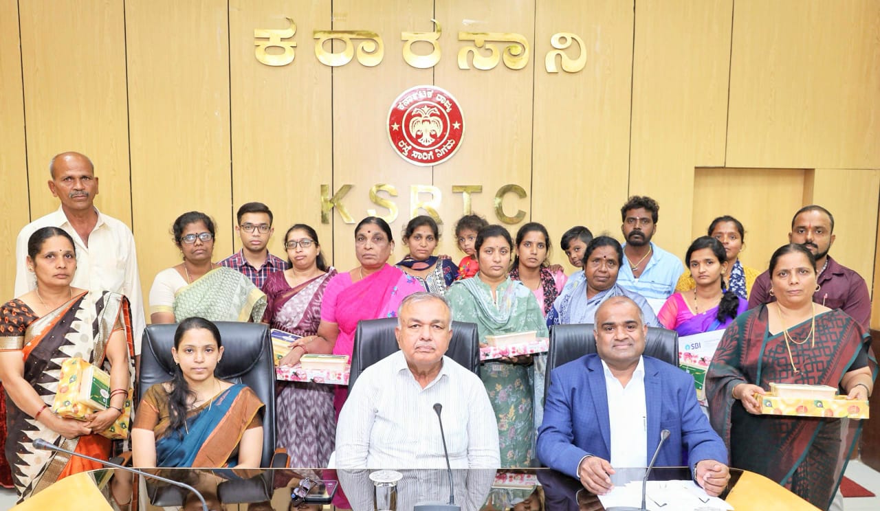ಇಂದು ಕರ್ನಾಟಕ ರಾಜ್ಯ ಸಾರಿಗೆ ನಿಗಮದ ಕೇಂದ್ರ ಕಚೇರಿಯಲ್ಲಿ ಸಾಂಕೇತಿಕ ಅಪಘಾತದಲ್ಲಿ ಮೃತ ಪಟ್ಟ ಸಿಬ್ಬಂದಿಗಳ ಅವಲಂಬಿತರಿಗೆ ತಲಾ ರೂ 1 ಕೋಟಿಯ ಪರಿಹಾರ ಮೊತ್ತವನ್ನು ವಿತರಿಸಿದರು ಅಲ್ಲದೆ ಸೀರೆ ಮತ್ತು ಸಿಹಿಯನ್ನು ನೀಡಿ ಗೌರವಿಸಿದರು.