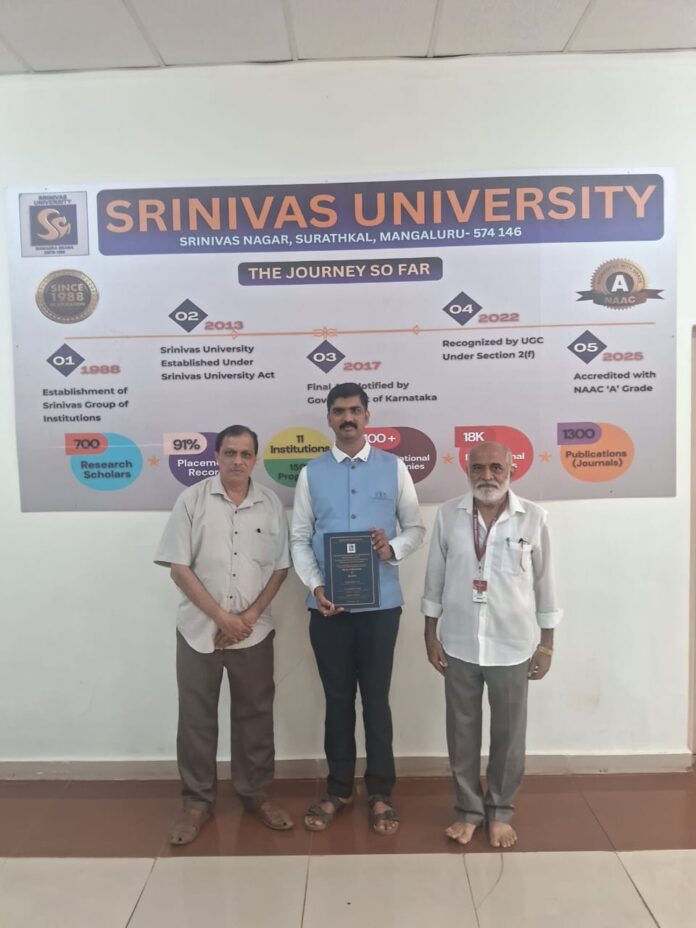 ಹುಬ್ಬಳ್ಳಿ ಮಾ.20: ಮಂಗಳೂರಿನ ಮುಕ್ಕದಲ್ಲಿರುವ ಶ್ರೀನಿವಾಸ ವಿಶ್ವವಿದ್ಯಾಲಯದ ಸಂಸ್ಕೃತ ವಿಭಾಗದಲ್ಲಿ ಅಧ್ಯಯನ ಮಾಡಿದ ಸುಬ್ರಹ್ಮಣ್ಯ ಜಿ. ಎಮ್. ಅವರು “मोहनदास करमचन्दगान्धिमहाभागस्य अद्वैततत्त्वचिन्तनानां विश्लेषणात्मकम् अध्ययनम्” (“An Analytical Study of Advaita Thoughts of Mohandas Karamchand Gandhi”) ಎಂಬ ಮಹಾಪ್ರಬಂಧವನ್ನು ಮಾರ್ಚ್ 9 ರಂದು ಮಂಡಿಸಿ ‘ಡಾಕ್ಟರ್ ಆಫ್ ಫಿಲಾಸಫಿ’ (ಪಿ.ಎಚ್.ಡಿ) ಪದವಿಗೆ ಭಾಜನರಾಗಿದ್ದಾರೆ.